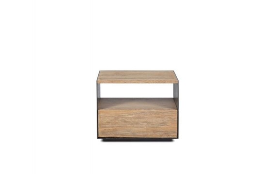 Mesita de noche en madera de teca reciclada natural y hierro.
