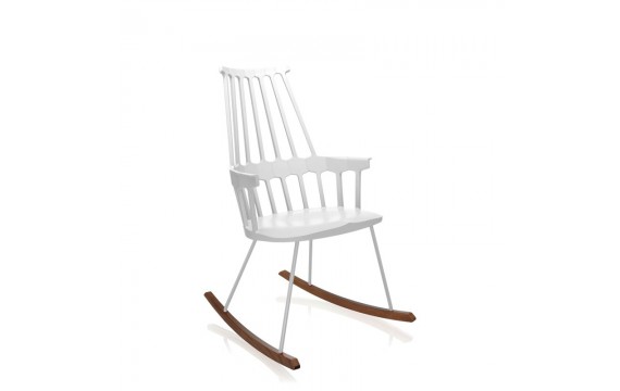La versión mecedora de la silla Comback de Kartell al igual que el resto de versiones, está diseñada por Patricia Urquiola en 2012 de inspiración windsoriana se caracteriza por la combinación de polímeros y maderas. Las sillas Comback nos trasladan a los porches de las casas coloniales.