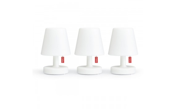 Edison the Mini, un conjunto de tres lámparas de mesa pequeñas para interiores y exteriores. Con su luz LED blanca y cálida, estas lámparas portátiles crean una atmósfera acogedora y brillante.