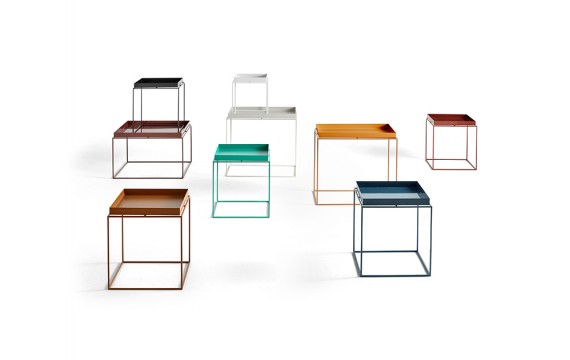 La mesa auxiliar Tray diseñada por HAY es un artículo puramente multifuncional, es decir, a su principal función de mesa para el café o mesita de noche, hay que darle la función de bandeja, utilidad que se consigue gracias a que el sobre metálico es extraible y puede servir de bandeja.