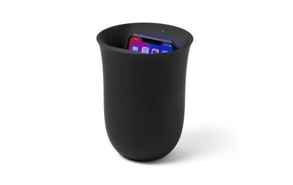 Oblio, un hermoso lugar para desinfectar y cargar su teléfono inteligente. Una estación de carga inalámbrica diseñada con una forma de jarrón que mata discretamente virus y bacterias dañinos que inevitablemente llegan a su dispositivo móvil.